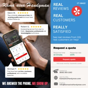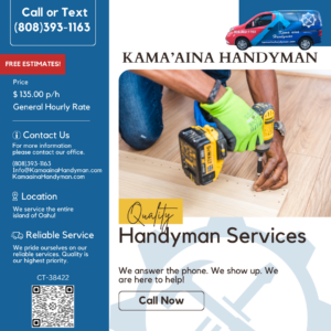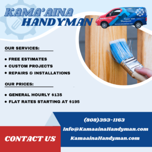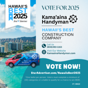 Show your support for Kama'aina Handyman! Vote us Star Advertiser’s Best Construction Company for 2025! Cast your ballot at StarAdvertiser.com/HawaiisBest2025 *One ballot per person. Voters must complete a minimum of... Read More
